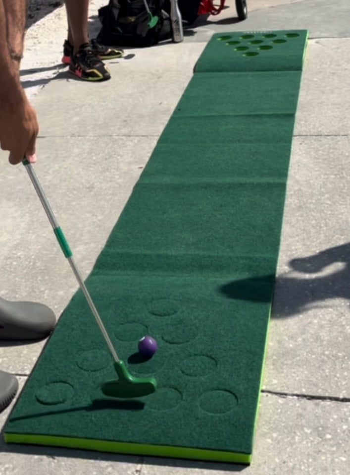 This set includes 1 putt putt mat, two mini golf clubs, and 10 golf balls. It also comes in a carrying bag for easy transport. The price is for a 4 hr rental ($40 refundable security deposit will be added as well)